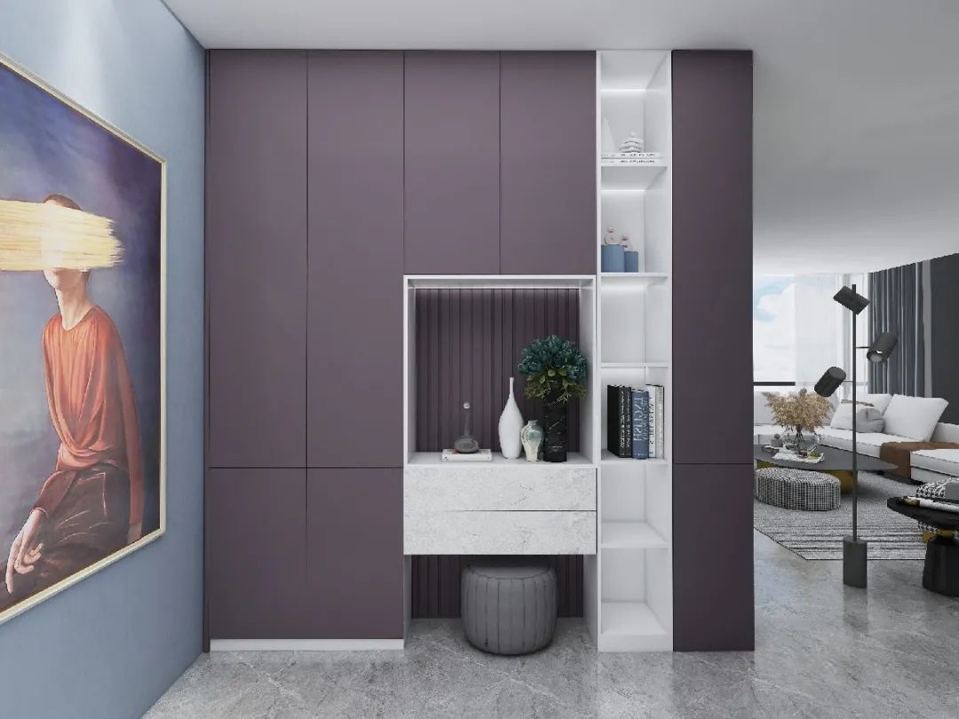 沒(méi)有玄關(guān),進(jìn)門(mén)就是餐廳,鞋子脫得滿(mǎn)地都是,不僅凌亂還很擋路!加一個(gè)隔斷玄關(guān)柜,既能收納鞋子,也能避免室內(nèi)一覽無(wú)余,隱私性更好。