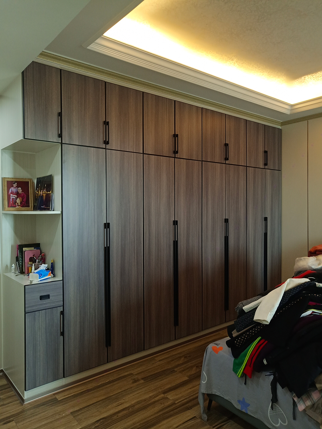 色彩可以對(duì)空間比例、面積、層次、氣質(zhì),起到加強(qiáng)或減弱的作用。像這樣,金色的加入,讓空間多了輕奢感。