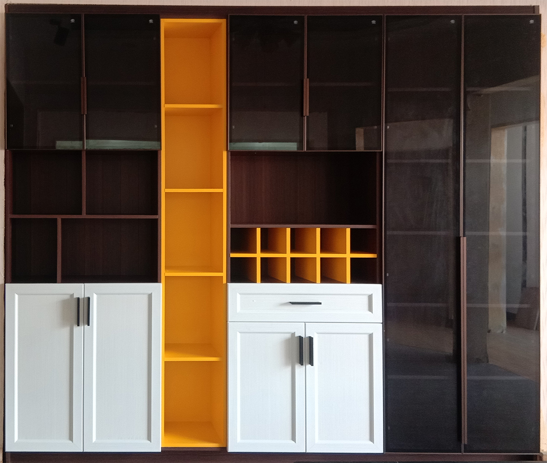 怕配色出錯(cuò)可以遵循這個(gè)原則:大面積淡色調(diào)+小面積飽和度高的顏色。像這樣,地柜和吊柜門板都選擇大面積淡色高光白的基礎(chǔ)上,開放式套格用檸檬黃等亮色點(diǎn)綴。