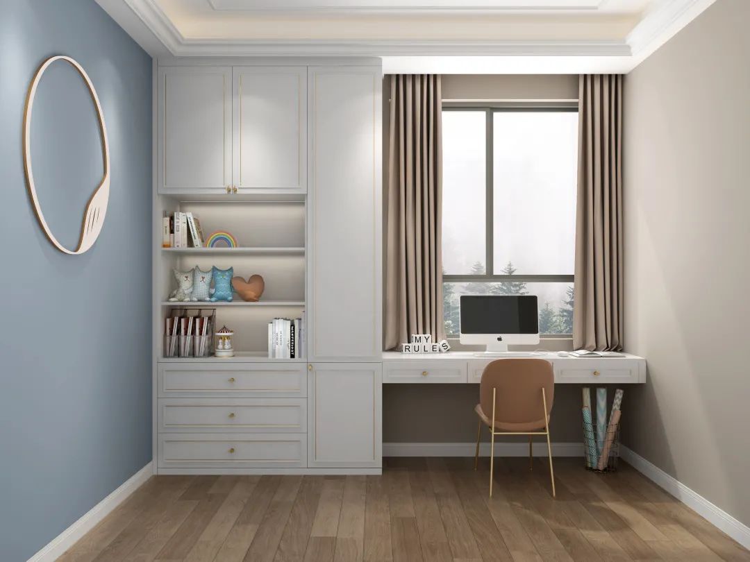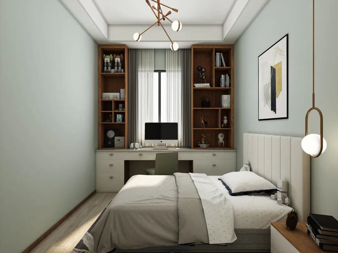 ②兩側(cè)根據(jù)空間和需求,可做書(shū)柜/儲(chǔ)物柜/衣柜;
